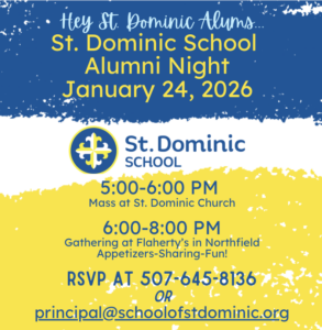 St. Dominic School Alumni Night at Flaherty’s on January 24th at 6:00 PM.